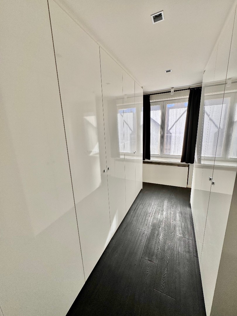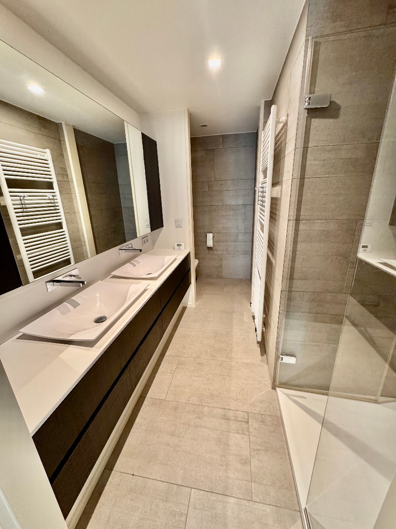 1 slaapkamer (parket) met dressing en ruime badkamer (inloopdouche, 2 lavabo en wc) met toegang tot het terras met mooi uitzicht op de Bijloke.