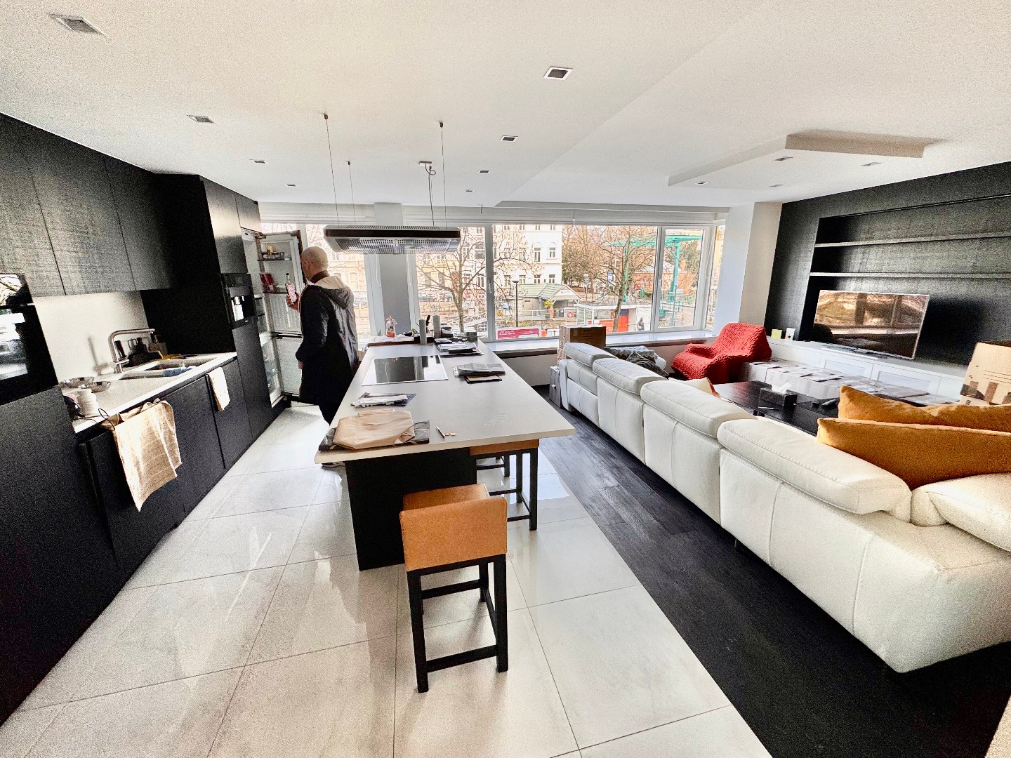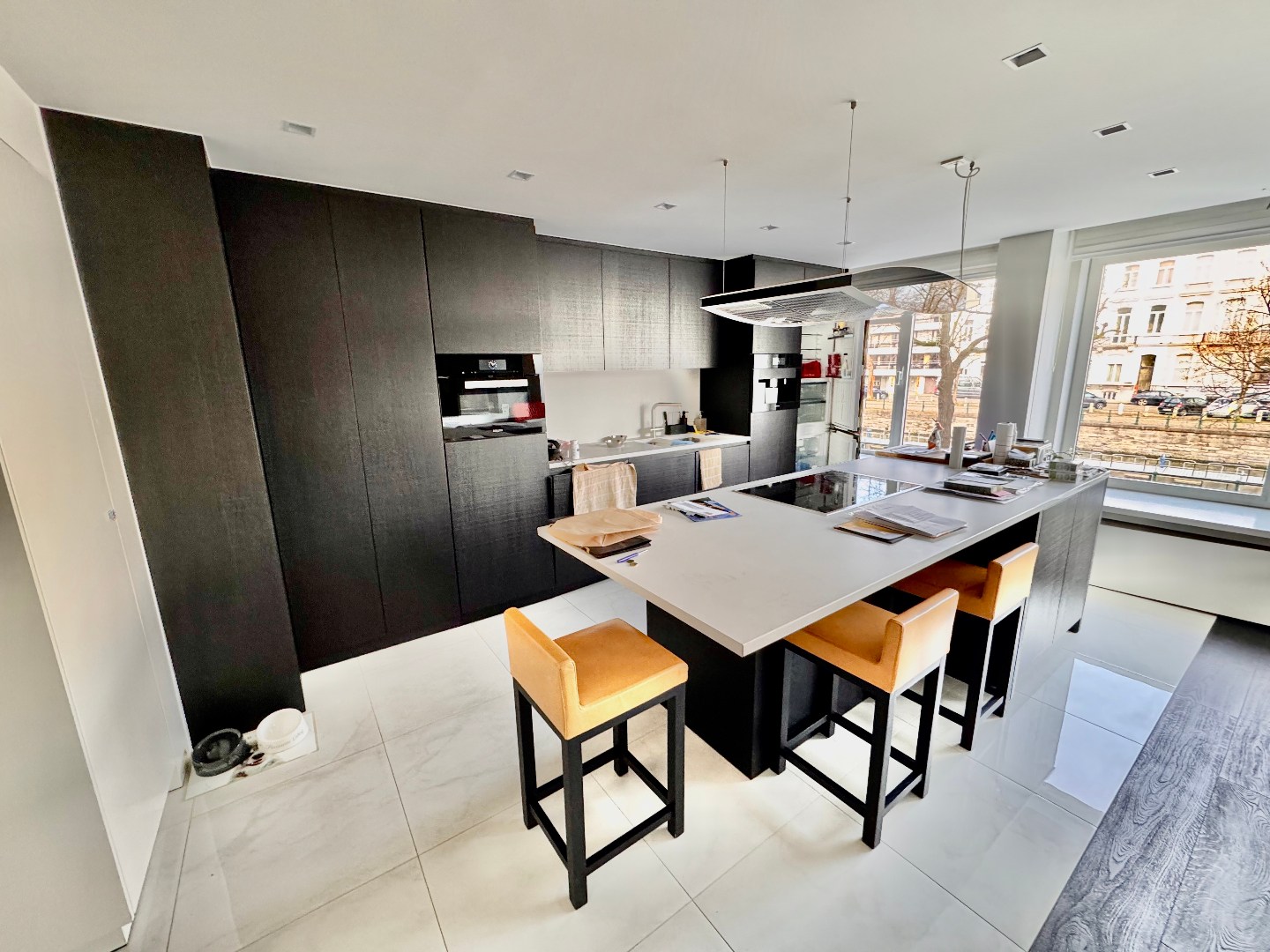 Open keuken, volledig uitgerust met frigo, freezer, vaatwas, inductie kookplaten, dampkap, oven