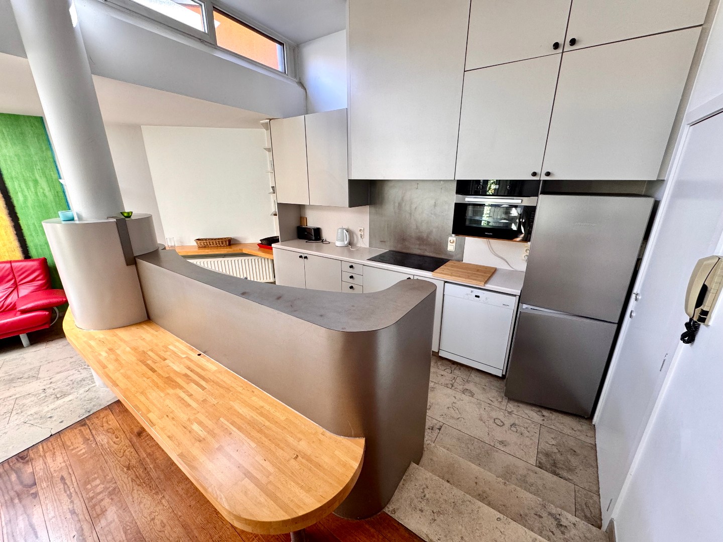 Afzonderlijke eetplaats + volledig uitgeruste keuken + wasplaats, uitgevend op terras
